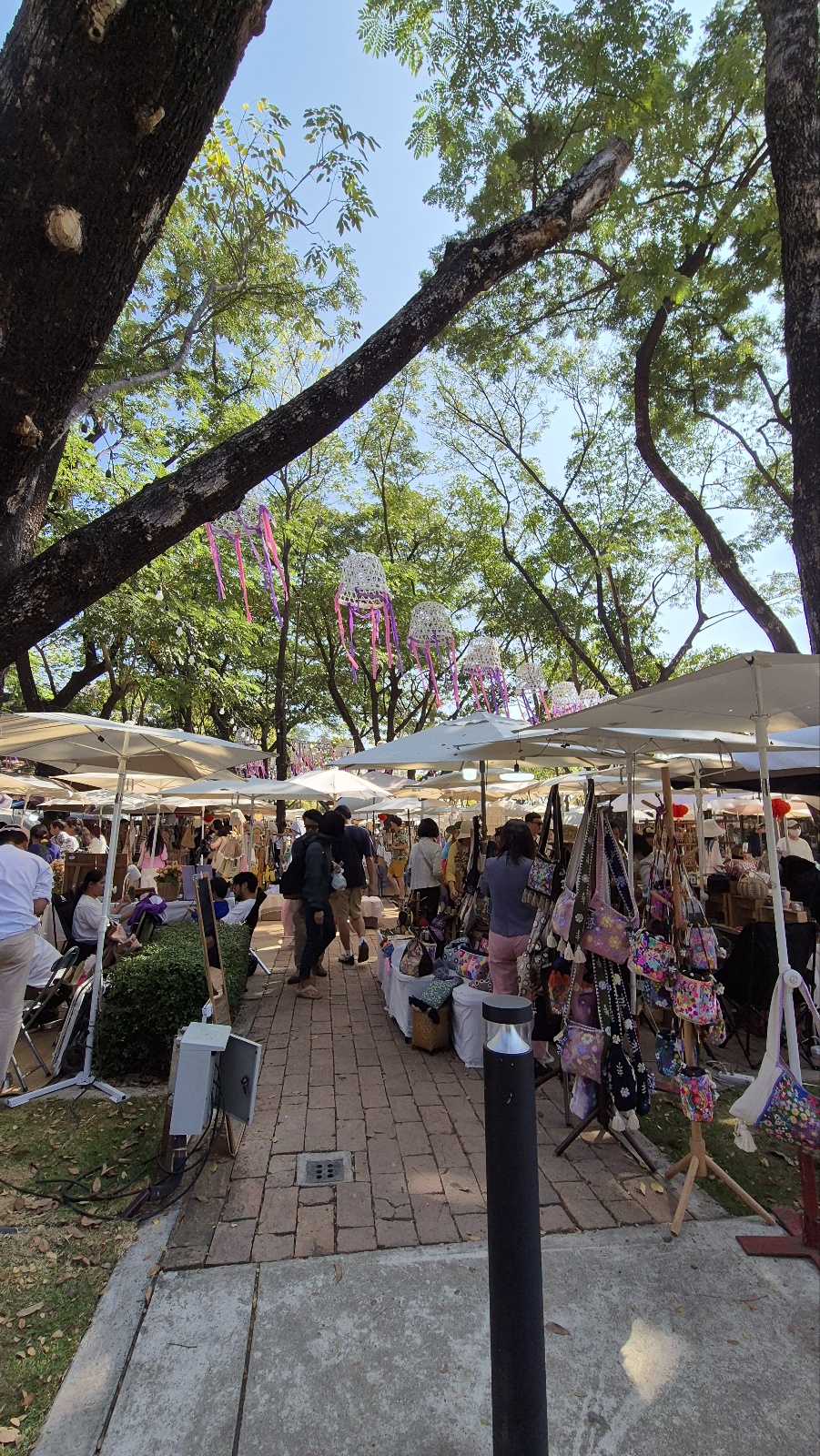 찡짜이마켓은 치앙마이 올드타운에서 조금 벗어난 곳에 있어서, 관광객들이 많이 찾지 않는 숨은 보석 같은 장소예요. 올드타운은 관광객들로 북적이지만, 찡짜이마켓은 현지인들의 일상적인 공간이라 그런지 사람들의 발걸음도 느긋하고 여유로워요. 마치 치앙마이 현지인들이 평소에 가는 마켓에 와서 그들과 같은 방식으로 쇼핑을 즐기고 있는 느낌이랄까요?